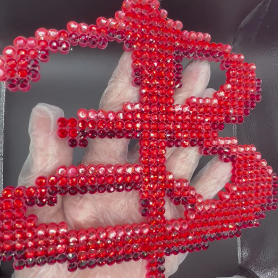 A beautiful addition to any BTVS fan’s collection. This handmade Perler bead and rhinestone “B” catches the eye under any light. Wall hanging hardware attached to the back or use a display stand to show off this one of a kind piece.