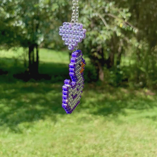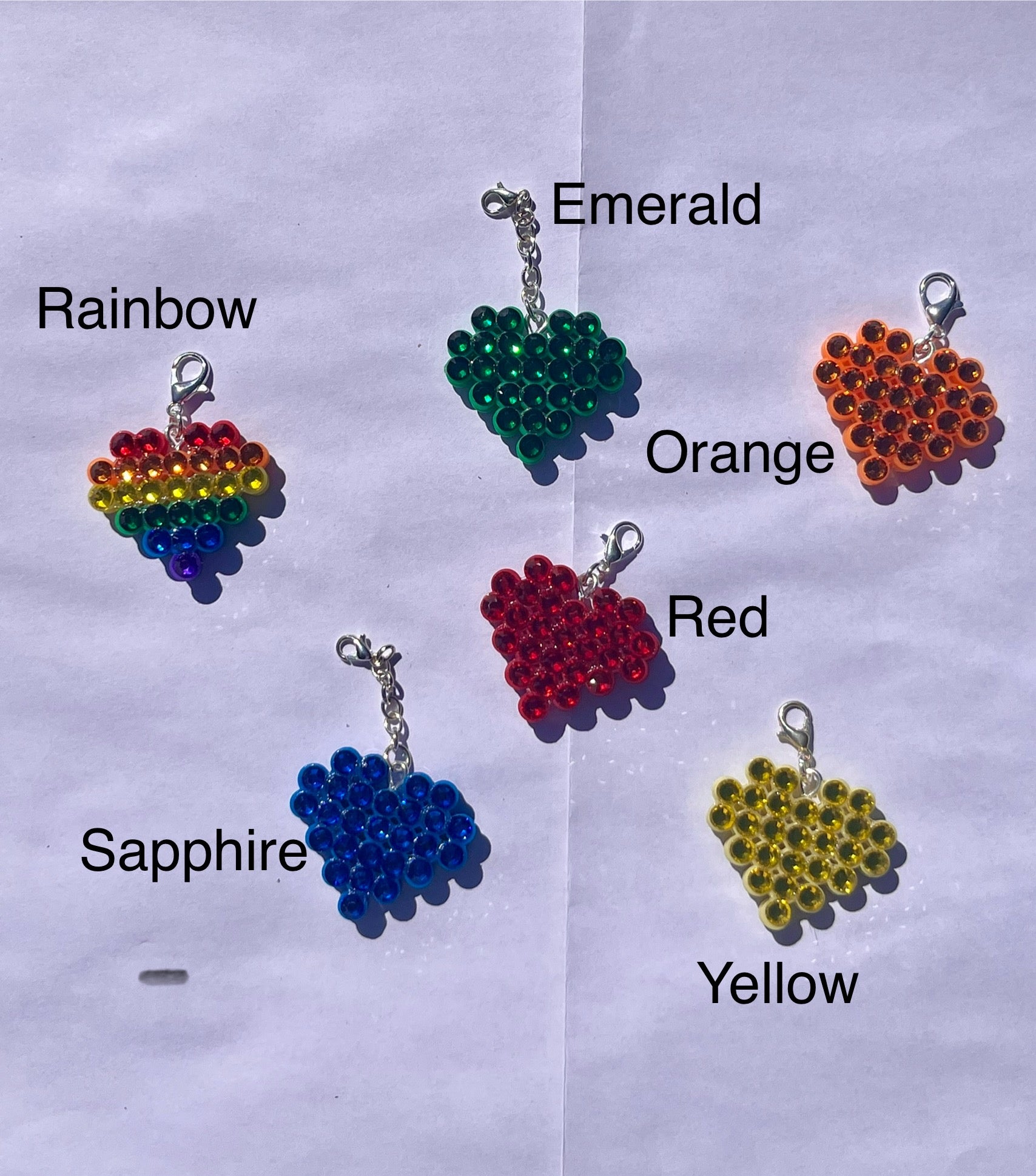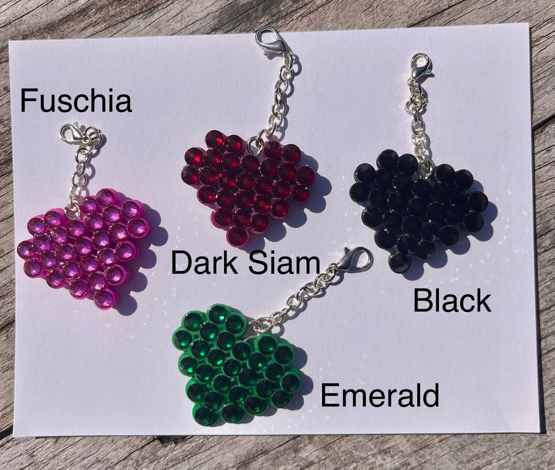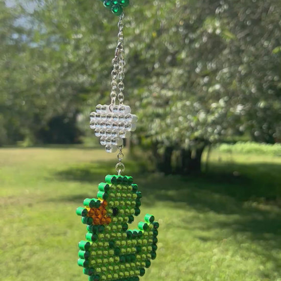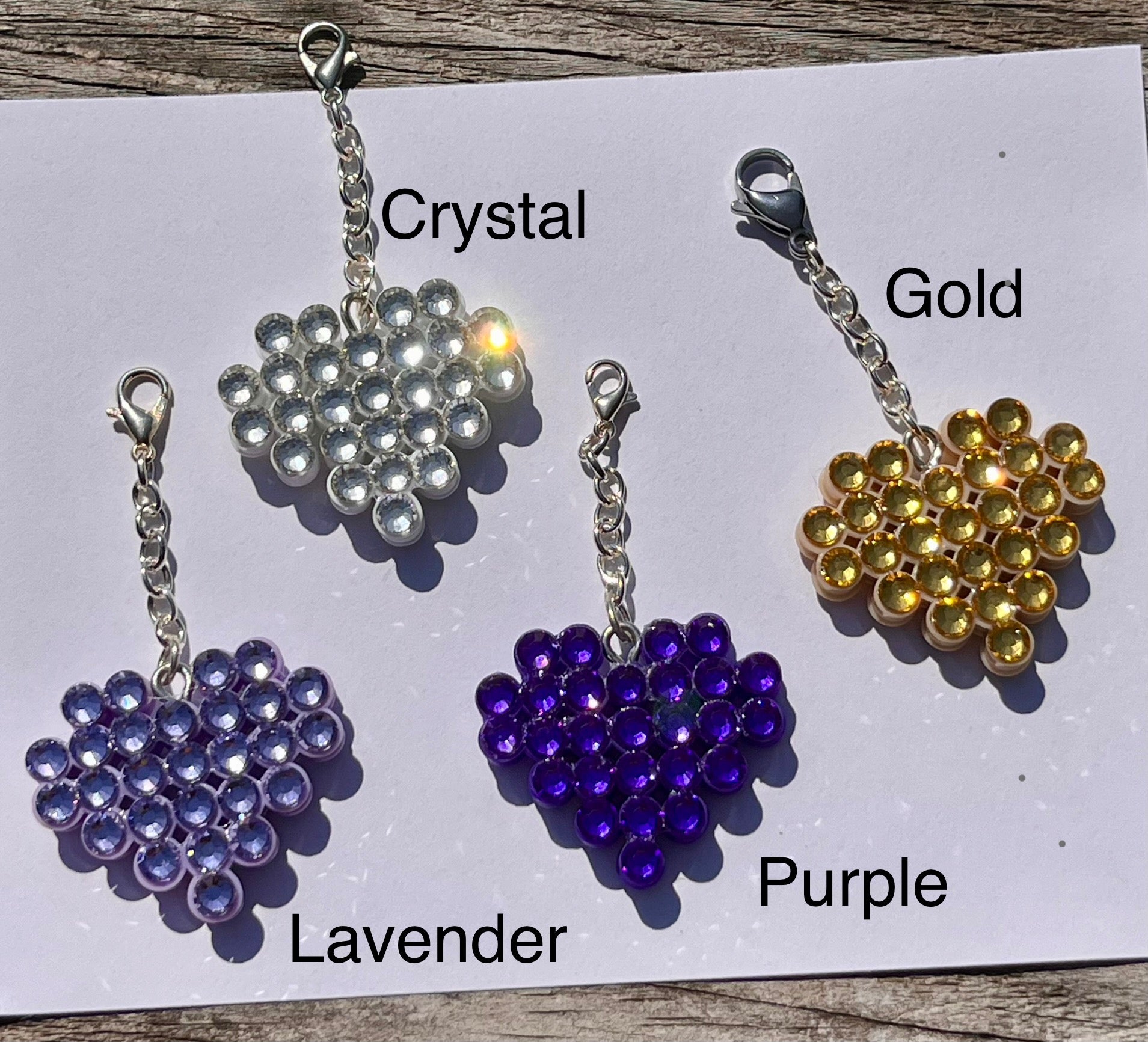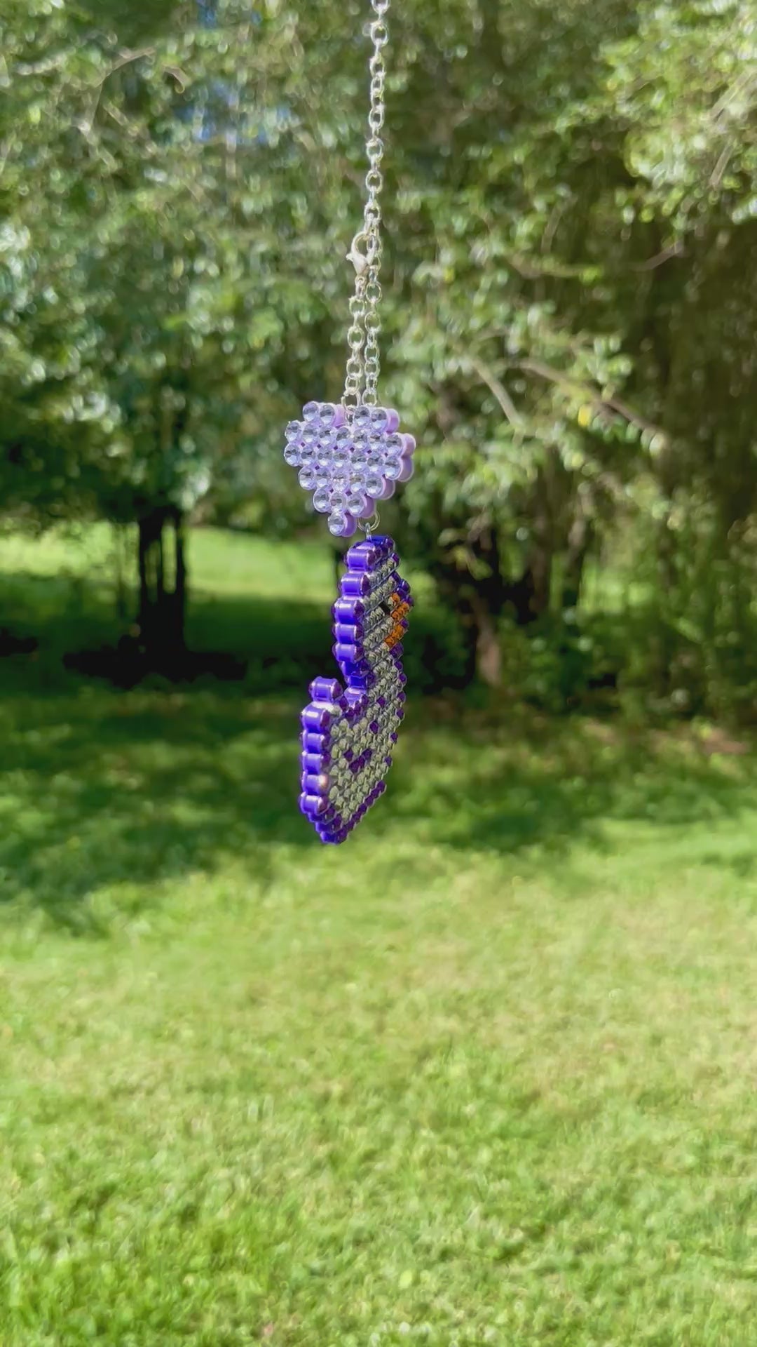 Adorned with a chain and elastic loop for hanging on a car rear view mirror but it’s beautiful anywhere there’s light and a hook! Choose the base color of your duck then select the color heart charm to go with it. Total length is approximately 14” and the duck ornament is 2 1/4”x2 1/4”. Weighs 1.1oz. Duck colors currently offered are: yellow, purple, green, and red (not pictured). See photos for heart charm color selections.