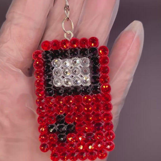A gorgeous small keychain with a red gameboy charm. Made out of plastic fused beads with hand glued rhinestones covering the surface. A unique gift for any game lover.
