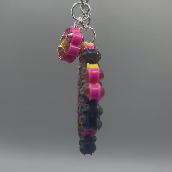 Sparkly rhinestoned and fused bead keychain with medium sized unicorn and small flower with corresponding key ring color. Price is for one keychain-please specify A or B for unicorn color choice.