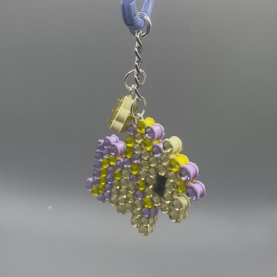 Sparkly rhinestoned and fused bead keychain with medium sized unicorn and small flower with corresponding key ring color. Price is for one keychain-please specify A or B for unicorn color choice.