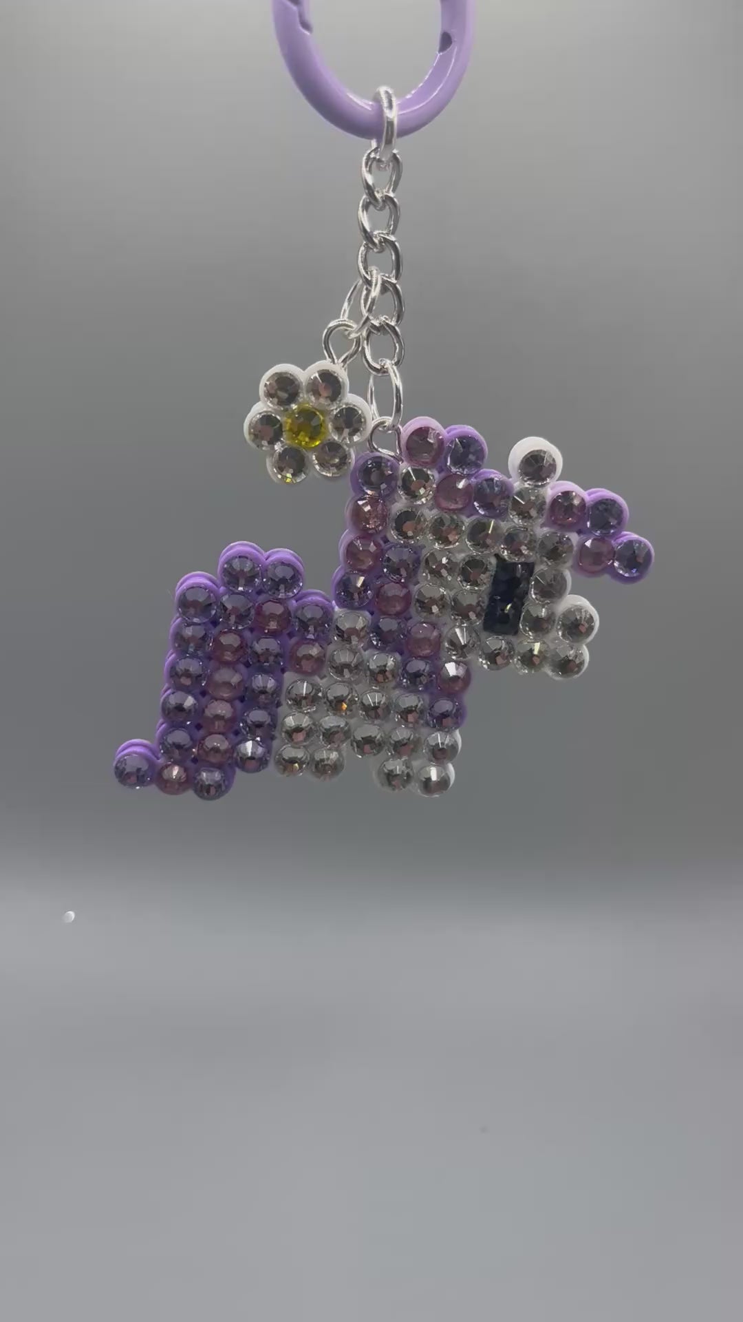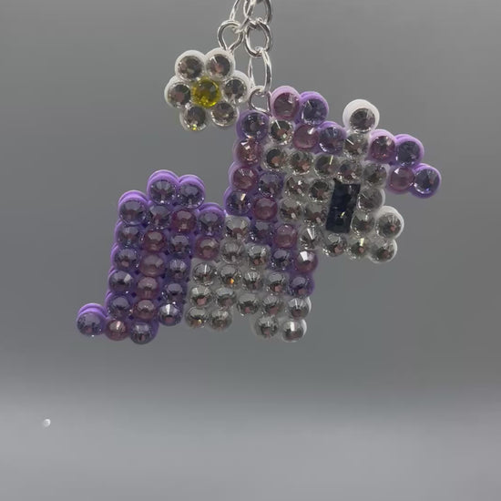 Sparkly rhinestoned and fused bead keychain with medium sized unicorn and small flower with corresponding key ring color. Price is for one keychain-please specify A or B for unicorn color choice.