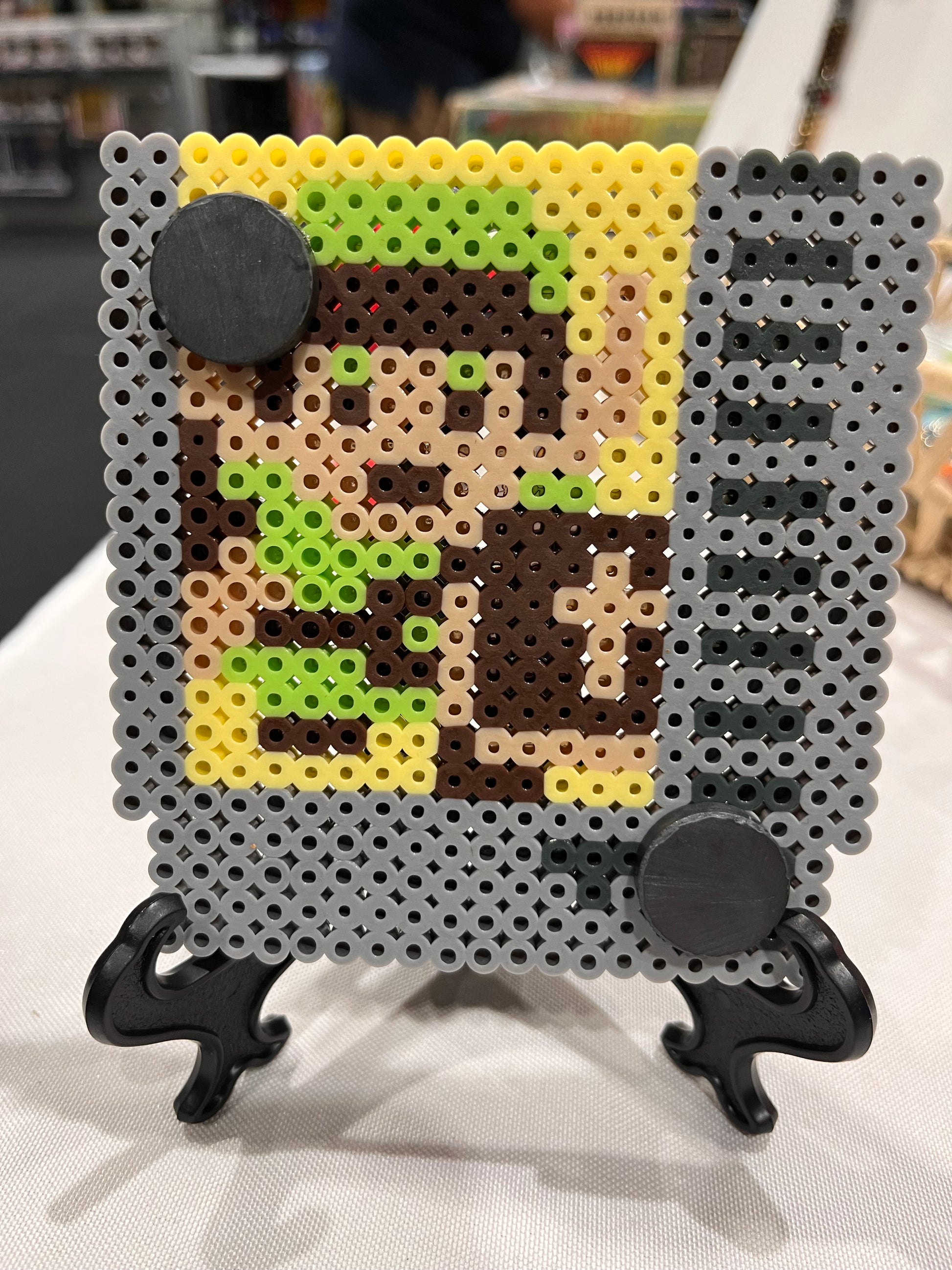 Cute replica game cartridge made of fused beads and covered in resin and glass rhinestones. Two strong button magnets on the back for fridge or metal cabinet display or simply display on a small stand. A unique find for any video game lover!